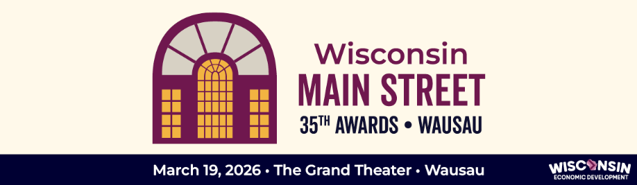 We are excited for you to join us at the 35th Annual Wisconsin Main Street Awards in Wausau, WI at the Grand Theater on Thursday, March 19 from 1:45-6:30 p.m.